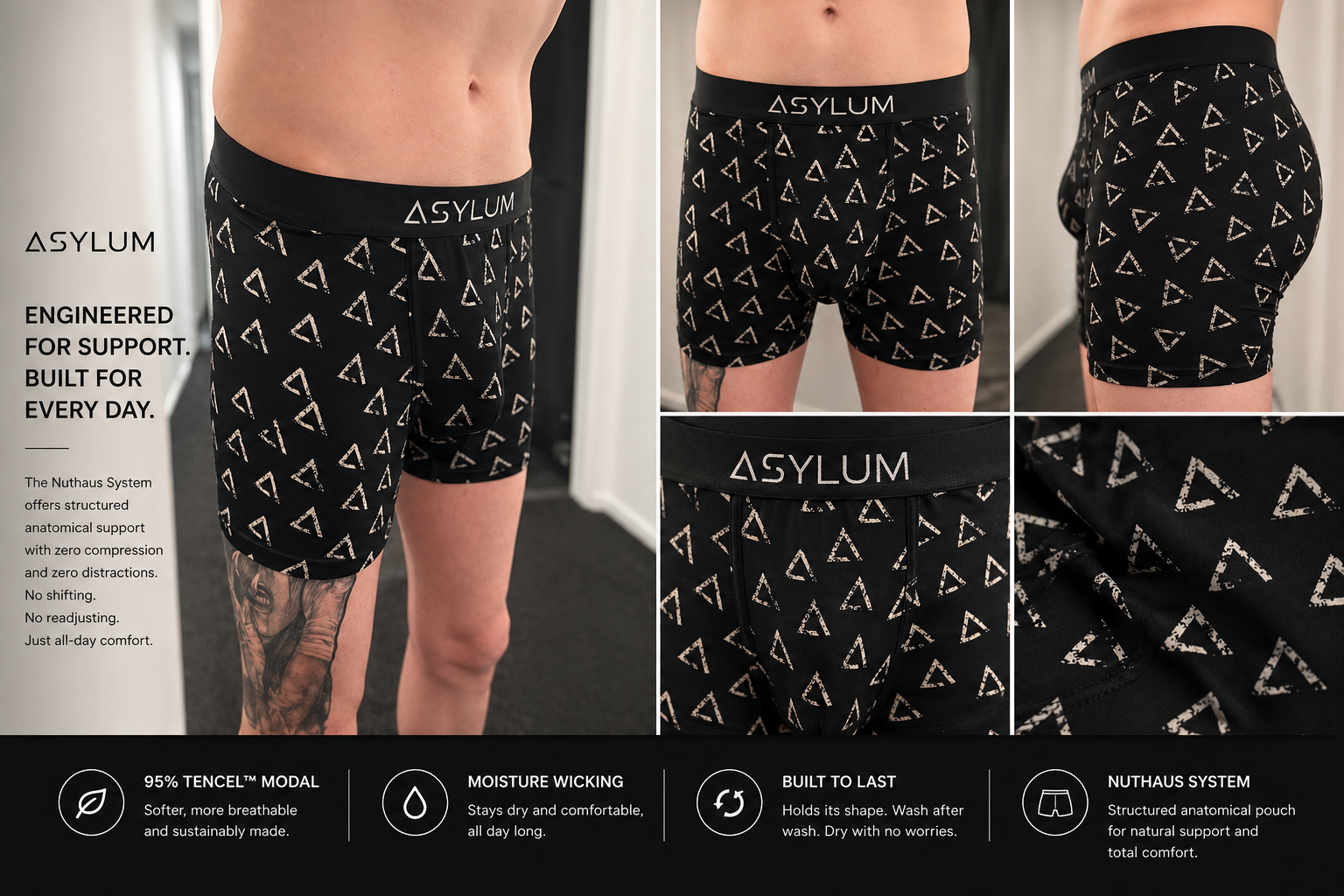 AsylumHaus — Men’s underwear built different. TENCEL™ Modal construction, Nuthaus anatomical pouch, always black. Brand of New Zealand.